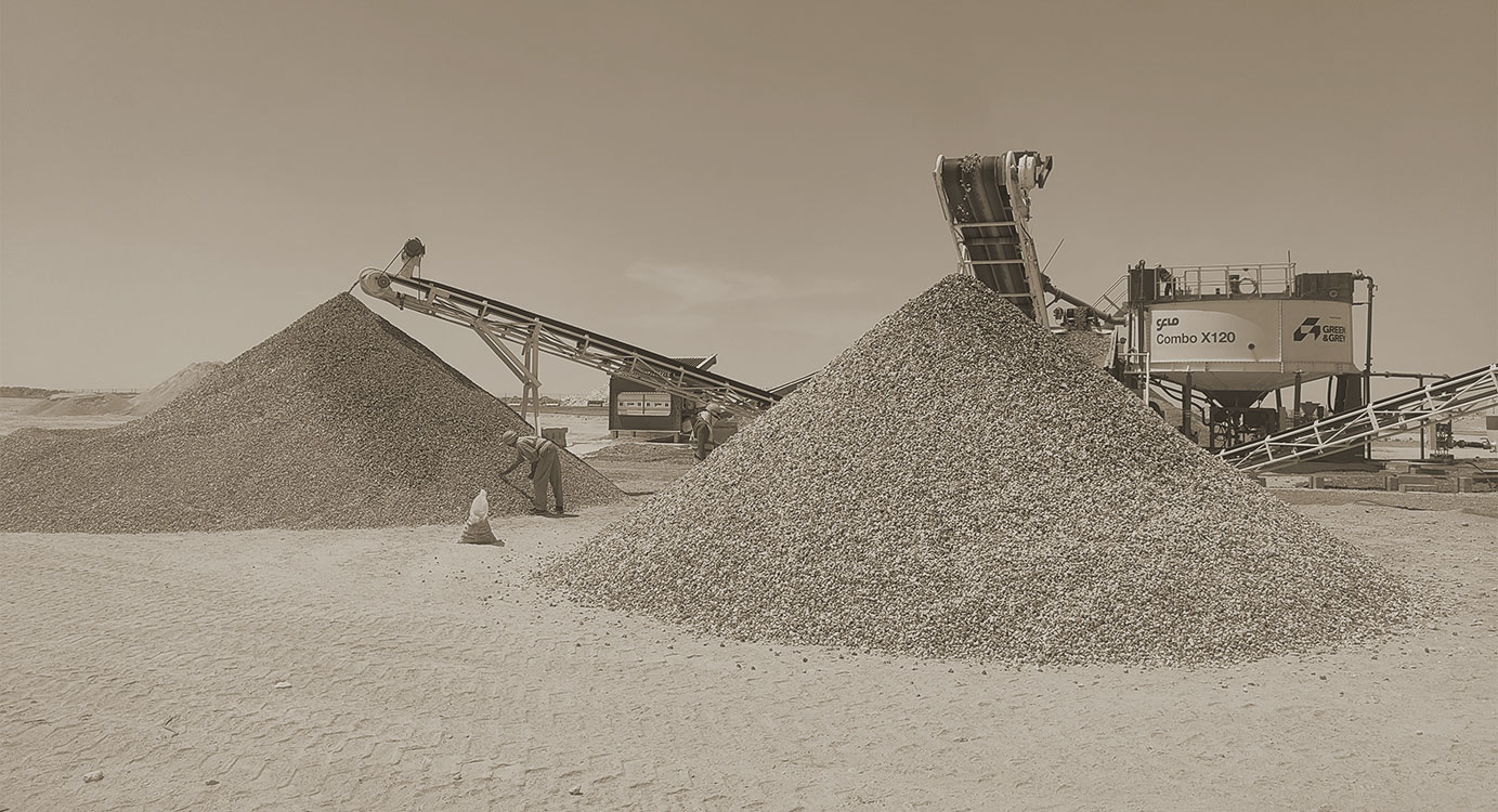 The scale of the problem was formidable: vast stockpiles of demolition rubble at a remote desert site in Rawdat Rashed landfill site, with no mains power and no piped water supply. Processing this material to a specification demanding less than 3% of fines at 63 microns, while achieving consistent grading and low contamination, required a purpose-engineered solution from the ground up.